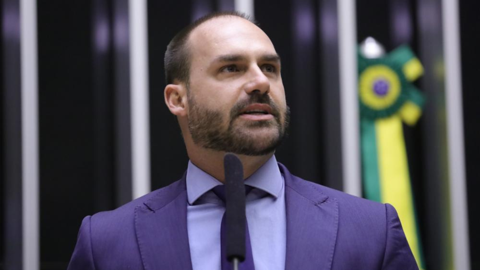 “Todo sacrifício é válido quando se quer um país forte e independente”, afirmou Bolsonaro, visivelmente emocionado O deputado federal Eduardo Bolsonaro