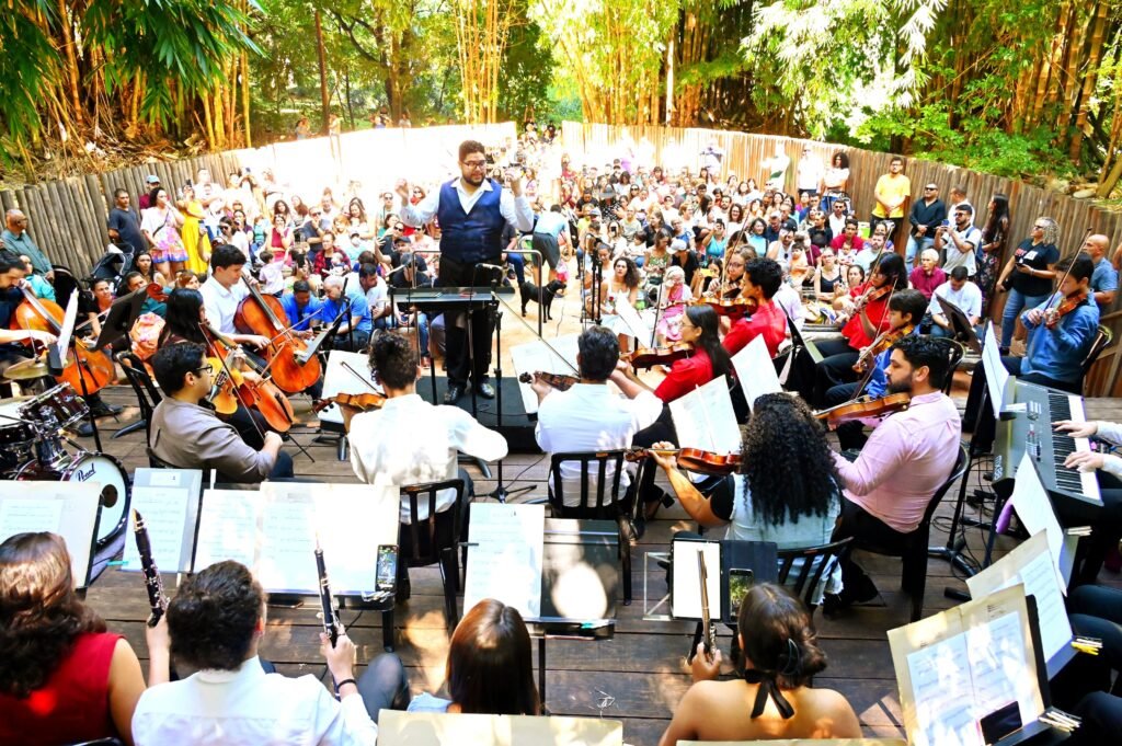 Evento gratuito reuniu famílias e encantou o público com clássicos de Roberto Carlos interpretados pelo Coro Juvenil de Goiânia e Orquestra Jovem Municipal Joaquim Jayme