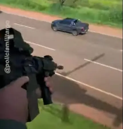 A ocorrência teve início após o veículo roubado, com registro em Brasília e já com placas adulteradas, ser identificado enquanto trafegava pela BR-153.