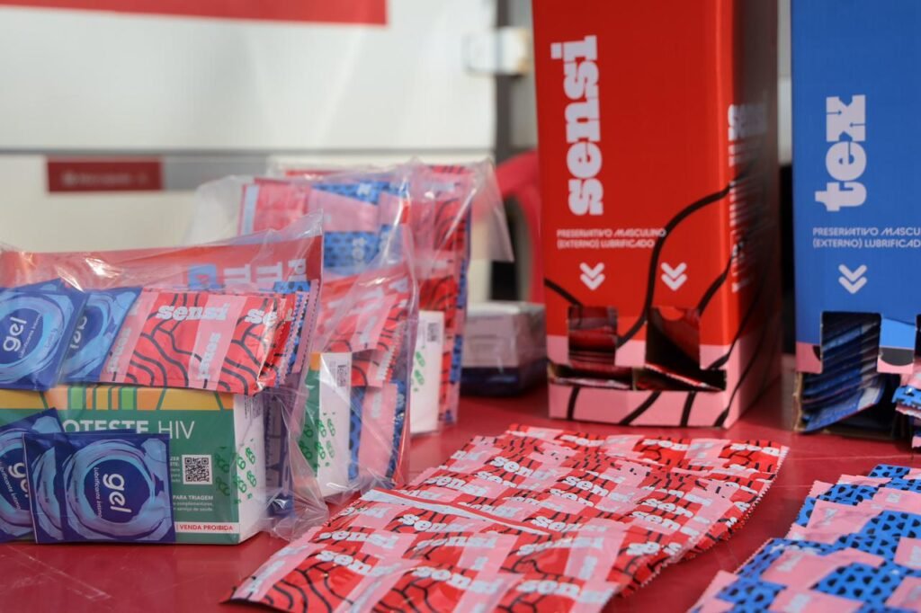 Além do material educativo, também foram entregues kits de prevenção contendo preservativos masculinos e femininos, autoteste para HIV e gel lubrificante, reforçando a orientação sobre sexo seguro e autonomia das mulheres.