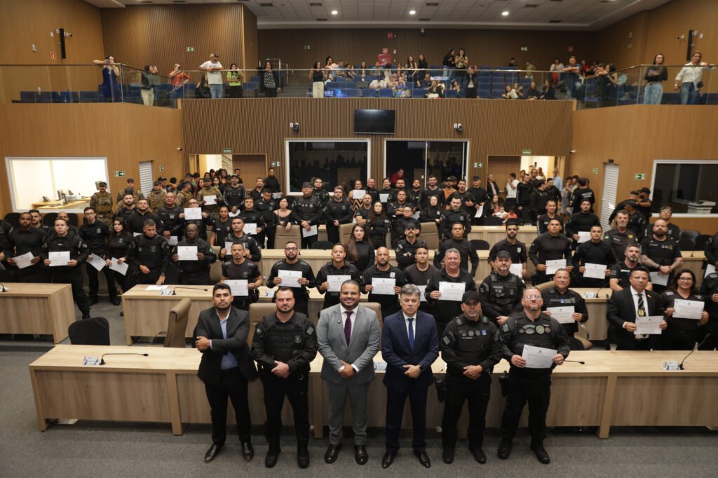 O vereador Dieyme Vasconcelos realizou, na noite dessa segunda-feira, 30, uma sessão solene na Câmara Municipal de Aparecida em homenagem aos servidores da Polícia Penal de Goiás. A iniciativa teve como objetivo reconhecer publicamente o trabalho essencial desses profissionais na manutenção da segurança e da ordem dentro do sistema prisional.m